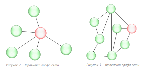 Объект на рисунке 2 обладает большим влиянием, но узлы, с которыми он связан, не имеют такого качества (никакого влияния). Объект на рисунке 3 имеет меньшее влияние, но он более могущественный, т.к. объекты, с которым он связан, также имеют некоторое влияние в сети.